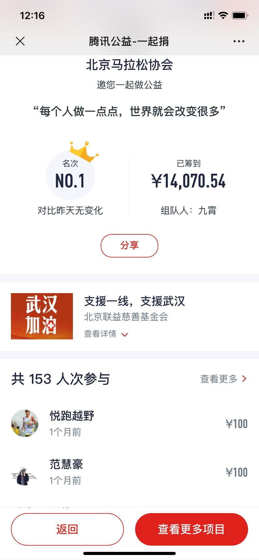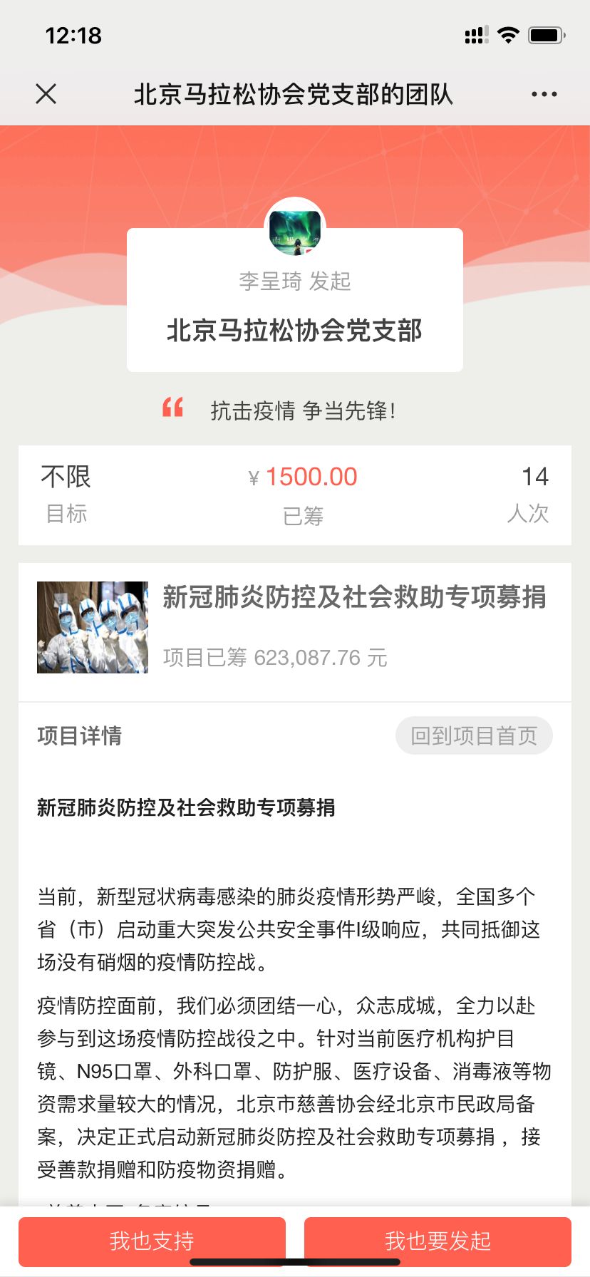 此外,北京马拉松协会通过协会党组织和社会影响力,广泛开展募捐活动。其中,协会党支部组织党员募捐,共计有15位党员共捐赠了1500元。协会联手北京联益慈善基金会设立“益马当先”路跑团体抗疫专项募捐活动,截止目前共有50余个团体参加,总捐款额度24万余元。同时,协会组织了面向个人会员的募捐,共计159人筹得14070元人民币。在面向公益机构捐赠方面,协会捐赠价值4000余元物资助力爱德养老院封闭抗疫。