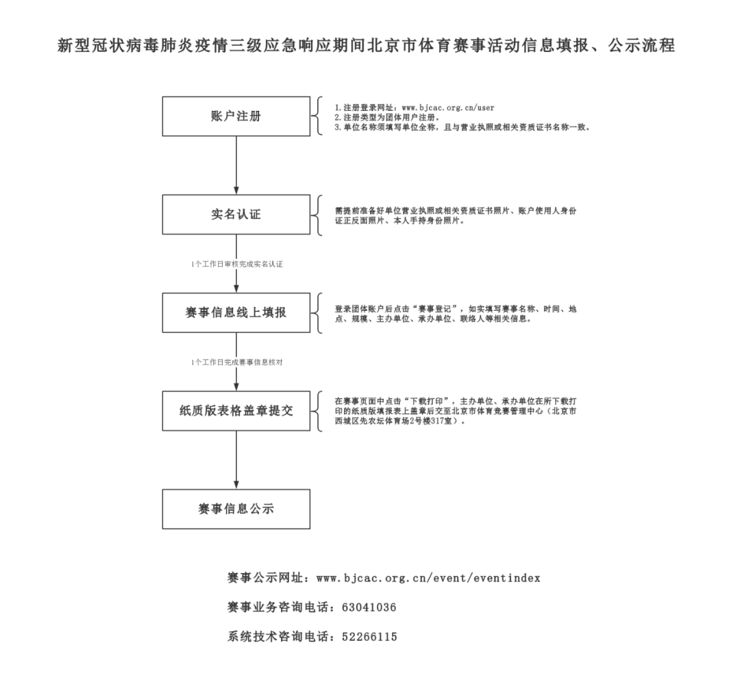 附图:新型冠状病毒肺炎疫情三级应急响应期间北京市体育赛事活动信息填报、公示流程